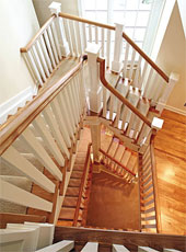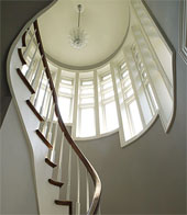 The Turret. Though your daily chores may be boring, the stairs on which you do them should not be, believes architect Jeffrey Penza. The project's designer and president of Penza Associates Architects, he believes that a stair's central function is motion. Part of a significant addition to an existing home, these turret stairs wind to an elegant guest suite above a garage. Following the contours of the exterior turret, the stairs are whimsical. Sunlight from stepped windows charges the interior with energy. Even back stairs, such as these, should be a focal point, says Penza, full of life and reflecting "the real action" of the home.