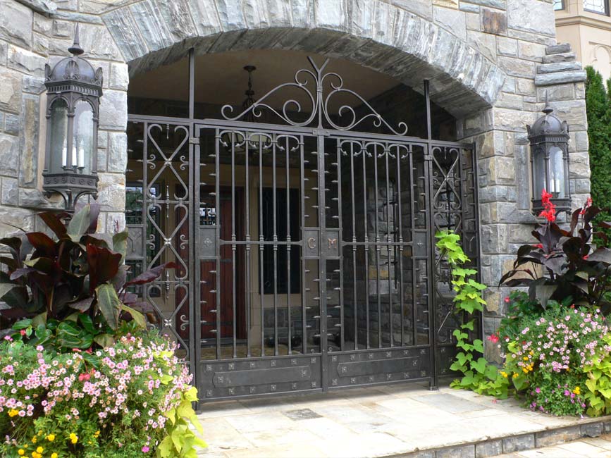 The making of these gates took 1200 hours and were the first of many projects for this particular residence where every detail was thoughtfully considered. The fabrication of dies and forming jigs that created each of the distinct elements within the framework of the gates, consumed a substantial amount of time. The different types of joinery and methods of fitting used were not only preferable from an engineering perspective but, aesthetically considered—for example, each horizontal bar was milled and slotted to very tight tolerances to receive its vertical counterpart.