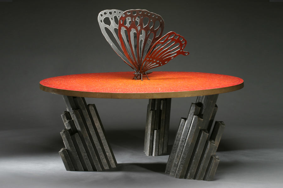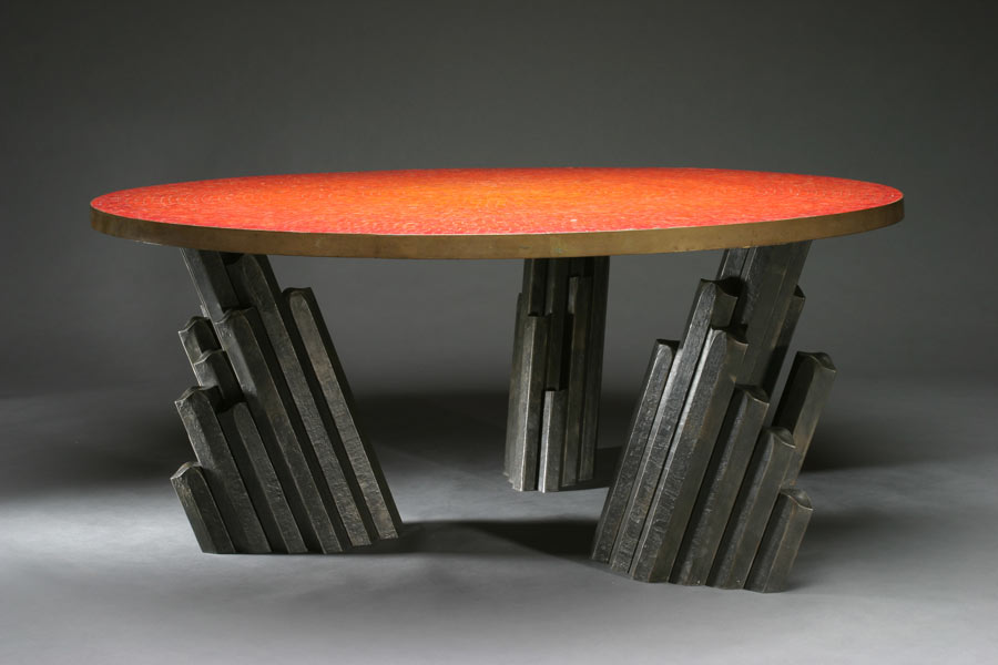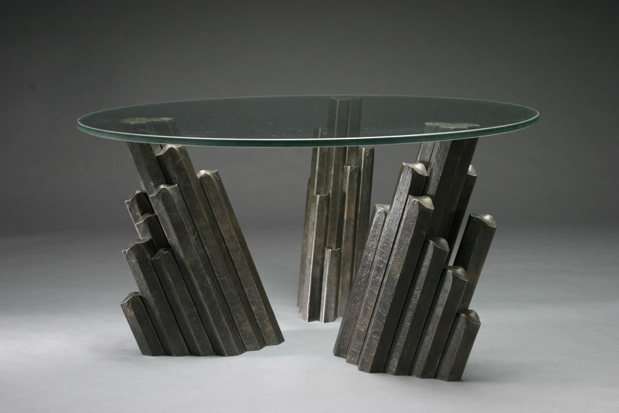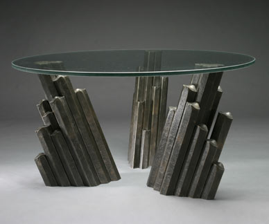This sculptural table base was influenced by the columnar basalt rock formations I have seen in several countries around the world.