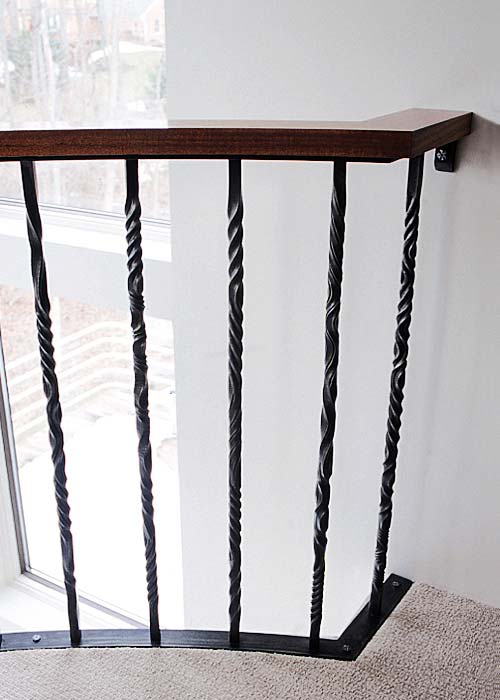 - Description: The fluid quality of steel is apparent in the vertical pickets that form this interior balustrade. Using special chisels, lines were first incised along the length of the heated ¾" square bar, then twisted in alternating directions to produce the undulating motion.